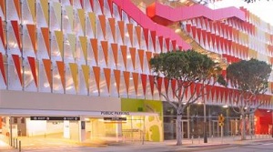Pictured above: The LA Lakers recognized the need to create a state-of-the-art headquarters to attract top athletic talent and integrate their basketball and business operations teams. The facility includes offices and a complete NBA training center with an exhibition court and arena seating. Below: City of Santa Monica’s new 750-space design-build parking structure has eight above-ground and three subterranean levels, approximately 7,000 square feet of retail space, Farmers Market storage and bicycle racks accommodating up to 90 bicycles.